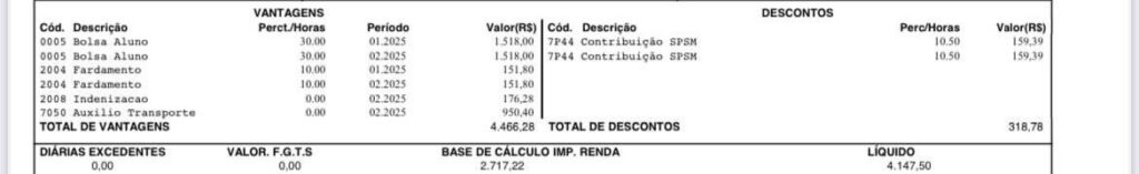 Contracheque comprovando a denúncia dos alunos