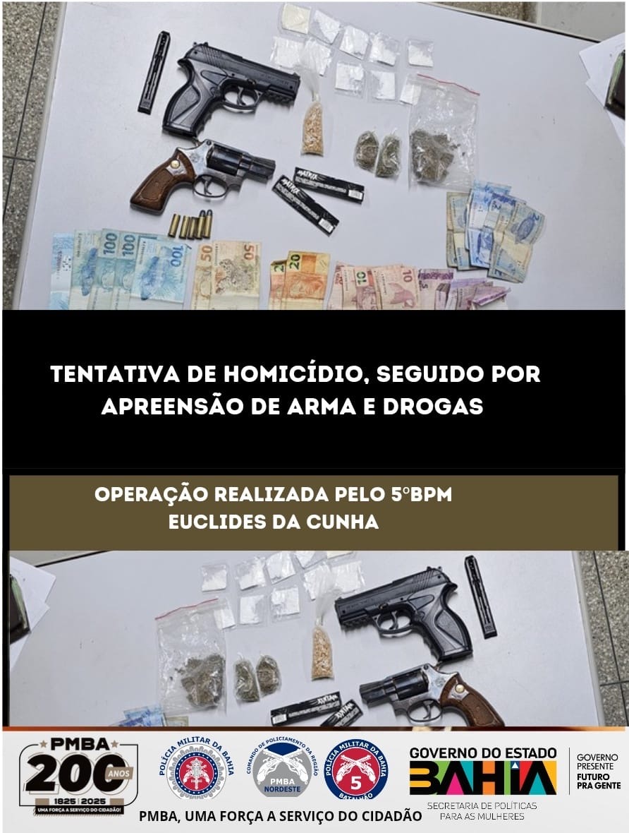 A Polícia Militar da Bahia (PMBA) mais uma vez demonstrou sua eficiência e compromisso com a segurança da população ao agir com rapidez e neutralizar um criminoso envolvido em uma tentativa de homicídio na localidade de Chão Vermelho, em Euclides da Cunha.