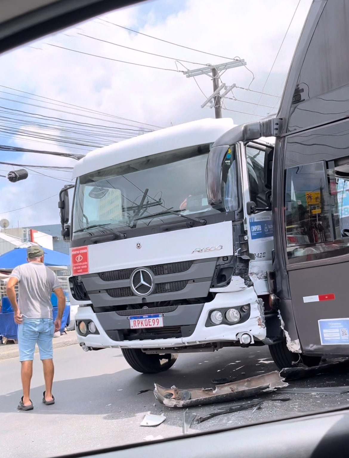 Um acidente envolvendo um ônibus de viagem e um caminhão da Prefeitura aconteceu nesta manhã, 01/04, na Avenida São Rafael, em frente ao Bom Preço e ao Shopping Ponto Alto. A colisão ocorreu na cabine do caminhão, mas ainda não há informações sobre feridos.