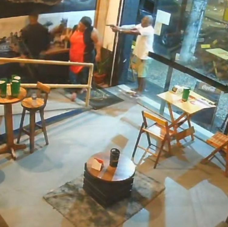 Segundo testemunhas, após a agressão, o suspeito ainda sacou uma arma de fogo e apontou contra uma funcionária, espalhando pânico no local. Câmeras de segurança, enviadas com exclusividade ao Pressão24h, mostram a confusão logo após o ataque, com clientes tentando conter o agressor.